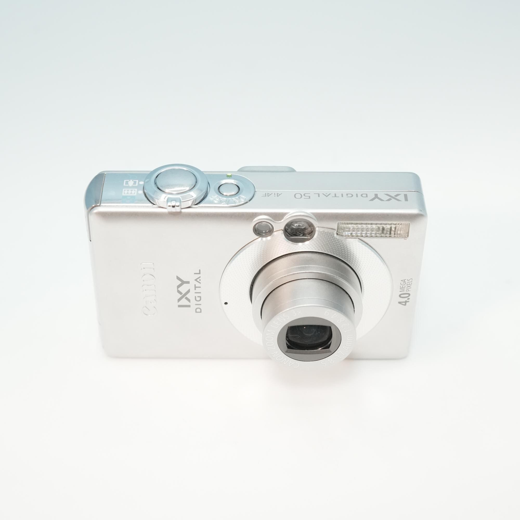 有効画素数5メガピクセルで、2005年に発売されたCanon IXY DIGITAL 50 AiAFは、光学3倍ズーム搭載で日常のスナップ撮影に手軽に使えるカメラです。