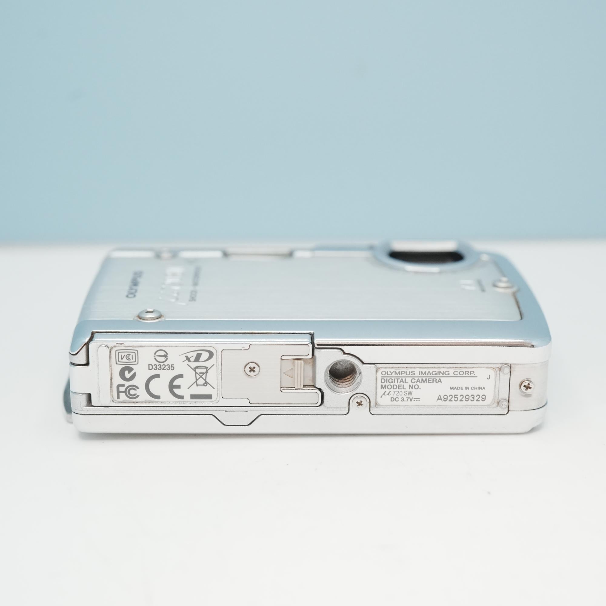 OLYMPUS μ 720SWは2005年に発売された7.1メガピクセルのカメラで、耐衝撃と防水機能を備えたタフなモデルです。3倍光学ズームと2.5インチ液晶モニタを搭載し、日常使いからアウトドアまで幅広く活躍します。