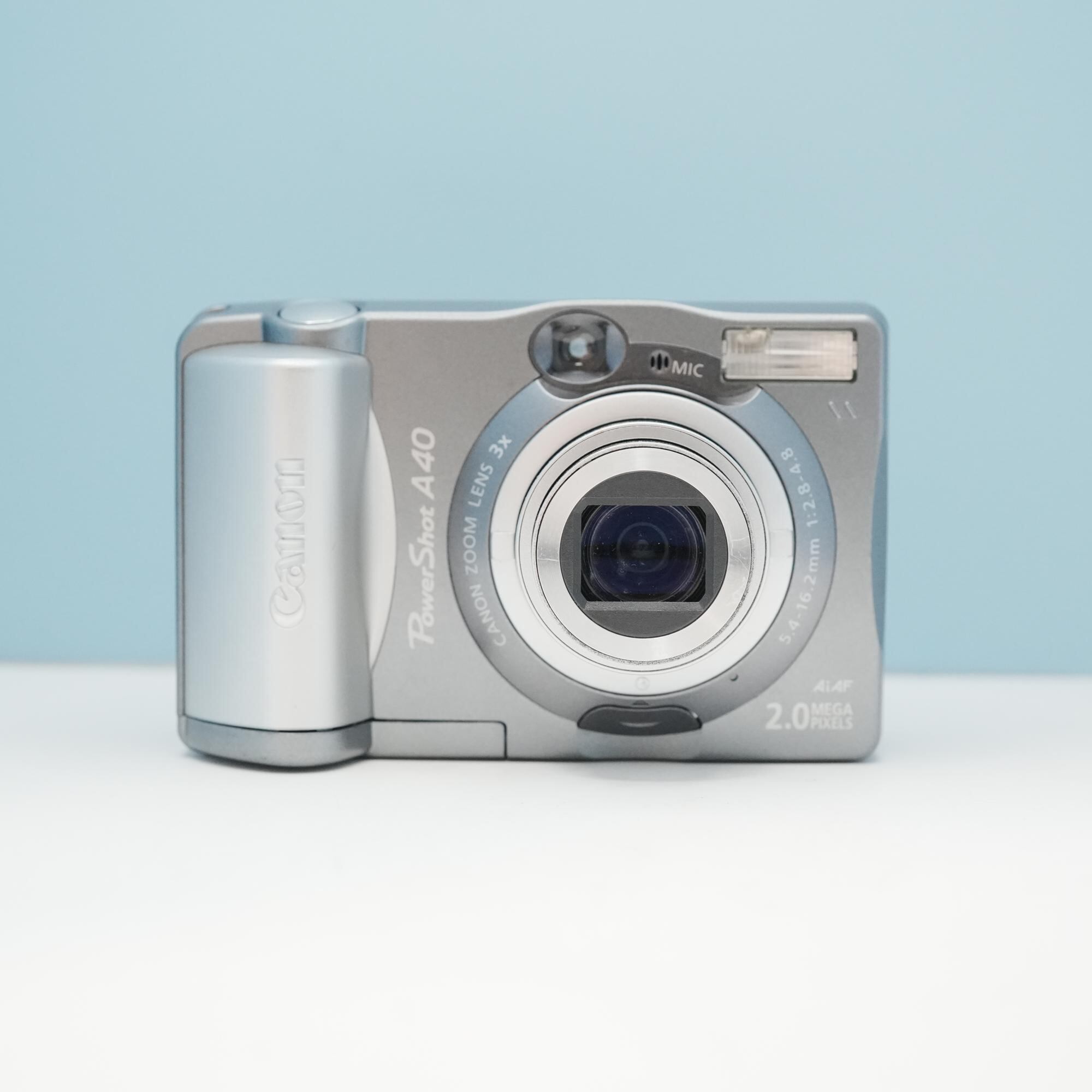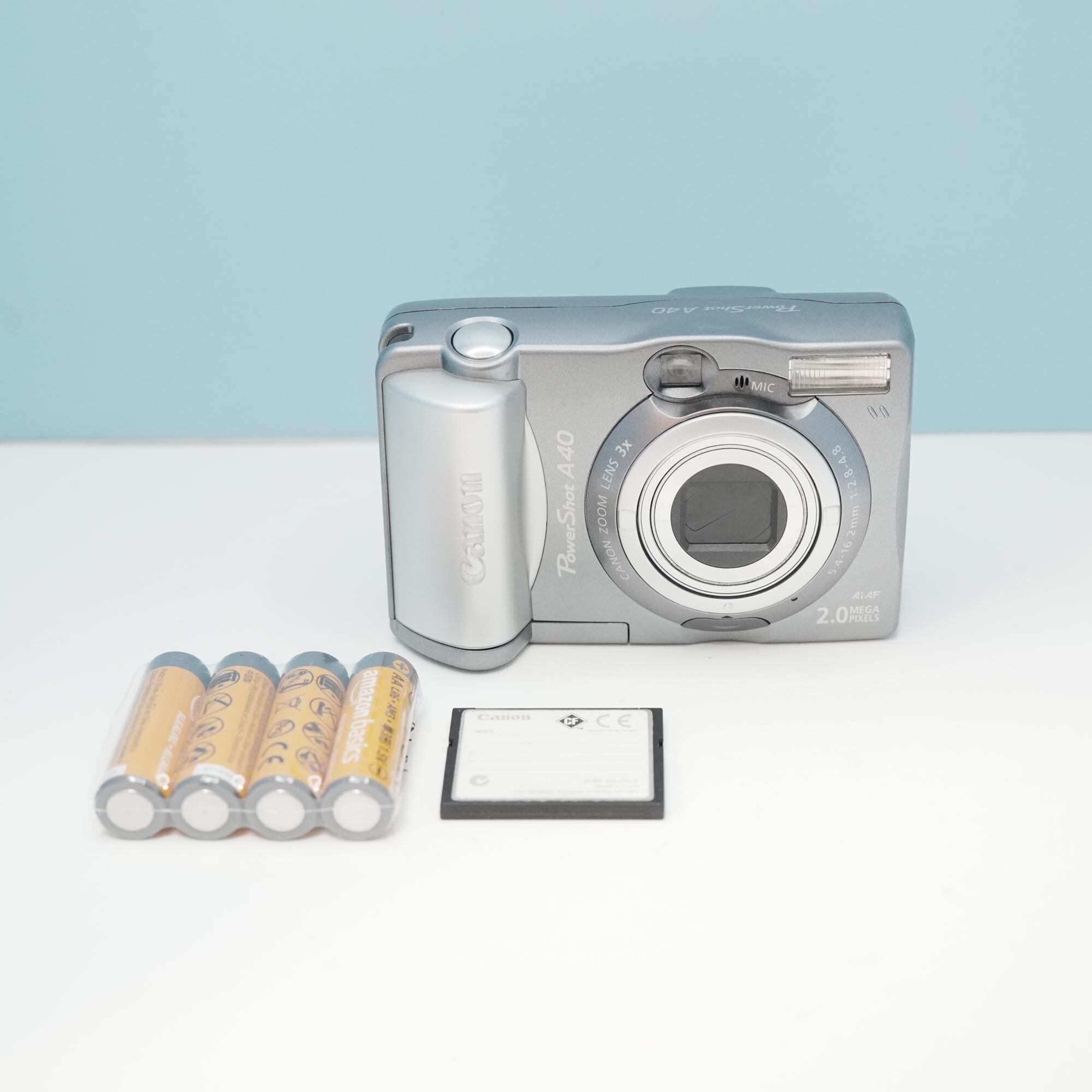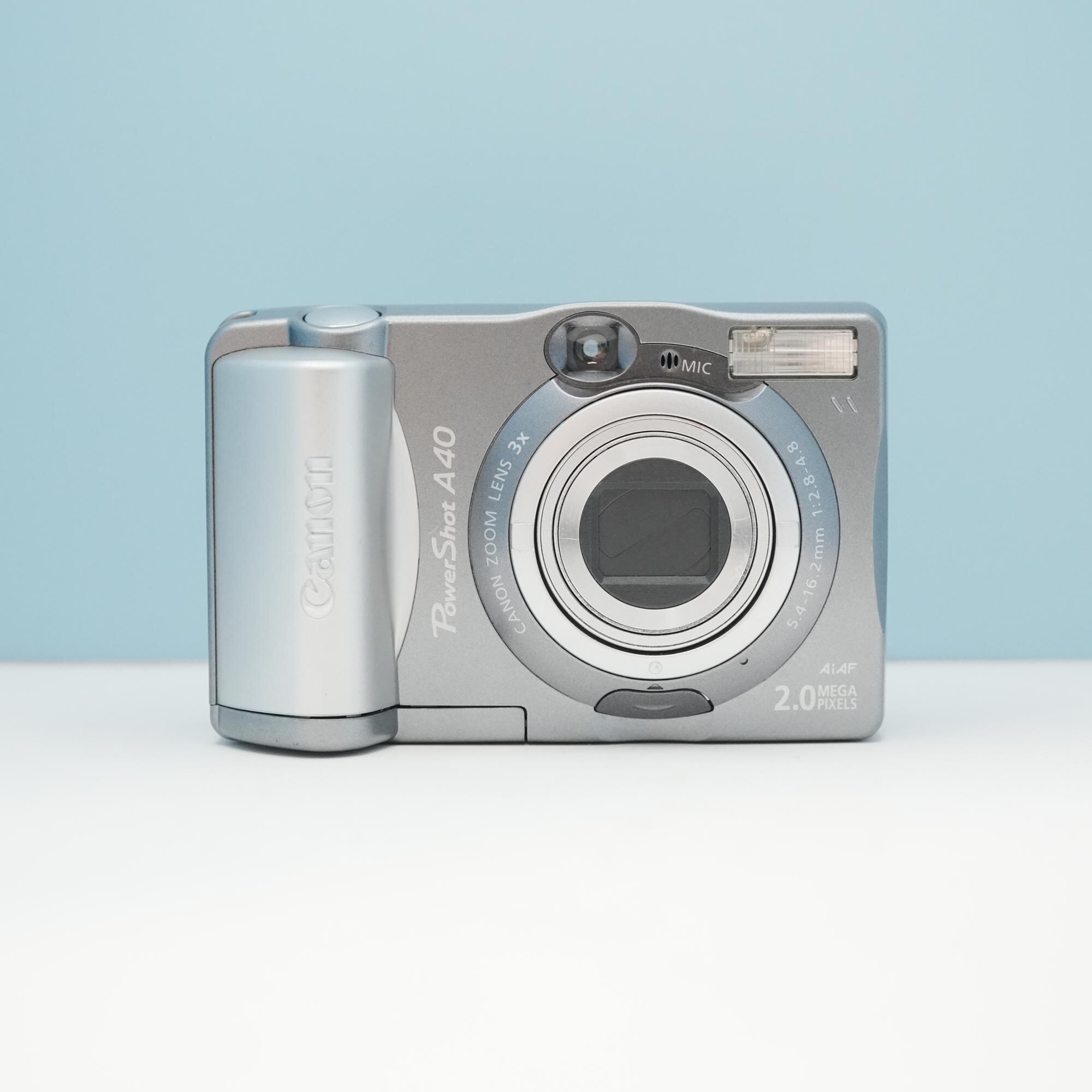 Canon PowerShot A40は2002年に発売され、約200万画素のCCDセンサーを搭載したデジタルカメラです。3倍の光学ズームを備え、日常のスナップ撮影を楽しむのにちょうど良いサイズ感です。アダプター付きでスマホに簡単に転送出来ます!